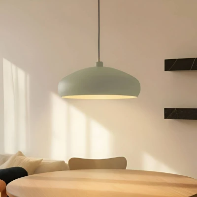 Elover single-bulb pendant light in a soft green colour The Elover single-bulb pendant light is made of iron. The round lampshade is opaque all round and only opens at the bottom. This allows the light generated to flow directly downwards and illuminate table surfaces extensively, for example. The inside of the lampshade gently reflects the light into the surroundings and underlines the beautiful light green colour of Elover.
