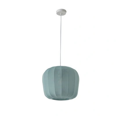 ManoManoGeneral description The Helin pendant light features a stylish industrial design with a fabric shade in light blue, combining modern aesthetics with Scandinavian lightness. It creates a cosy and warm atmosphere, making it perfect for living rooms, dining rooms, or bedrooms. The soft light distribution enhances the inviting warmth of your space, inviting relaxation and stimulating creativity. Technical specifications Diameter: Ø 35 cm Material: Textile Color: Light blue Installation Requires an external dimmer switch for light intensity adjustment (not included). Usage Ideal for enhancing the atmosphere in living rooms, dining rooms, or bedrooms. Can be used to create a welcoming environment for relaxation and creativity. Other information