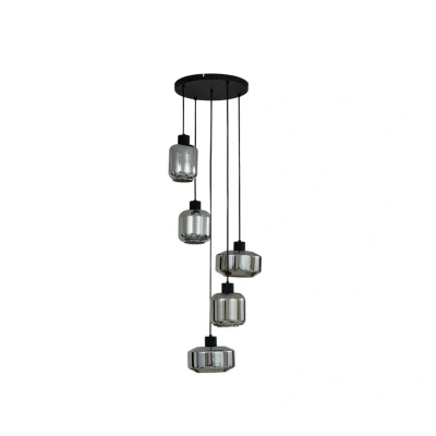 Lights.coSmoke grey Hildur pendant light with five glass shades in different sizes The Hildur pendant light, a masterpiece of modern design, adds an extraordinary atmosphere to any living or dining room. With its 5-bulb construction arranged in a round arrangement, it creates a harmonious play of light that is ideal for both relaxing and socialising. The combination of smoke-coloured glass and black finish emphasises the stylish elegance of this lighting element. Although this light is not equipped with an integrated dimmer, it can easily be connected to an external dimmer to adjust the brightness to individual preferences (please note that the external dimmer must be purchased separately).