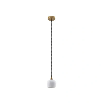 Lindby pendant light Nolane, Ø 11 cm, ceramic, white/brass