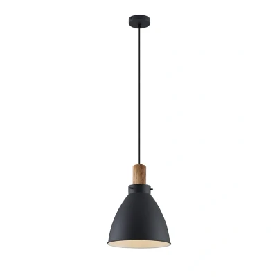 Lights.coTrebale pendant light with black metal lampshade and wooden decoration The lampshade of the Trebale pendant light is made of metal with a matt black finish on the outside and a white finish on the inside for optimal light reflection. A cylindrical eucalyptus wood element serves as a decorative element above the lampshade and provides a beautiful contrast to the matt black finish of the metal. Above a table or counter in the kitchen, dining room or living room, the pendant light provides light that shines exclusively downwards over a wide area. Equipped with an E27 socket, the light can be fitted with a long-lasting and energy-saving LED bulb, for example.