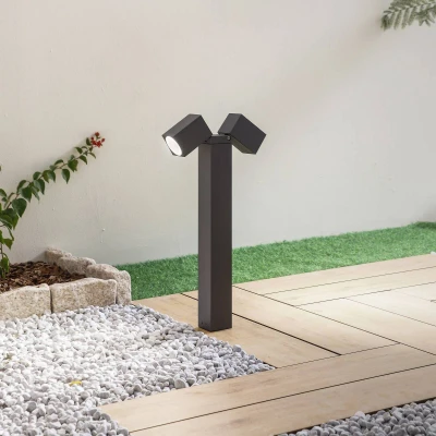 Lights.coOthil 2-bulb pillar light with adjustable lampshades The Othil pillar light is made of high-quality aluminium and is finished in a discreet dark grey. Its modern look enhances any outdoor area and gives it an attractive touch. Othil can be placed in the garden, on the terrace or along driveways, for example. The two light outlets shine the light towards the ground and can also be swivelled through 90°. This makes it possible to direct the light beam to where it is needed.