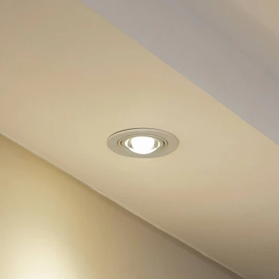 Lights.coSimple Jyla recessed spotlight with a matt finish The Jyla recessed spotlight promises a modern design with a simple, white look. It has a round shape and is installed in the ceiling. It is made of iron and its head can be swivelled by 15°. This allows for flexible lighting that can be adjusted at any time. The Jyla recessed spotlight is ideal for a living room or hallway, and combining it with other lights from the same series creates a harmonious overall impression. It is also fitted with a GX53 bulb, which rounds off the overall look. The GX53 bulb has a curved lens and therefore looks like a glass hemisphere; it can be purchased as an accessory.