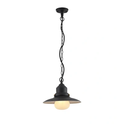 Lights.coRoisin outdoor hanging light made of dark grey steel The Roisin outdoor hanging light has a striking design made of dark grey steel. A white glass diffuser surrounds the bulb to be used and hangs from the rustic lampshade in the style of a fishing lamp. An E27 bulb can be selected here, which generates glare-free illumination through the lampshade. Thanks to its IP44 IP code, the light is protected against splashing water and is therefore perfect for installation on a covered terrace. The Roisin outdoor hanging light hangs on a slim suspension, so that it can also be installed on smaller terraces without taking up too much space. The industrial look sets striking accents within the architectural style of the house. It attracts curious glances and makes every outdoor area something very special.