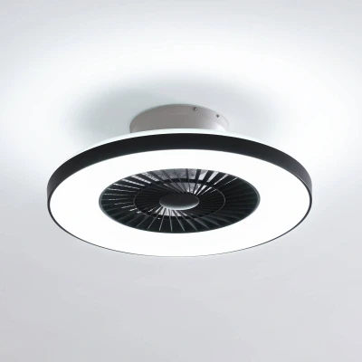 Paavo black LED ceiling fan: smart control and remote control The Paavo LED ceiling fan offers numerous settings and control options in addition to its elegant appearance. Whether by remote control or the Tuya app, everything can be conveniently adjusted from the comfort of your sofa. Paavo is made of plastic and features a sparkling star effect on the diffuser. This provides adjustable options such as fan speed, light brightness and various light colours, a timer and even a night light function. Technical details Fan: Power per speed: - 40 watts at 1070 rpm - 37 watts at 920 rpm - 31 watts at 670 rpm - Maximum volume flow: 32 m³/min - Maximum air speed: 2.8 m/sec - Fan sound power level: 58 dB (A) - Service value (SV): 0.7 (m³/min)/W Smart control: - can be controlled via remote control or the free Tuya app - No bridge, hub or similar device is required for smart control - Infinitely dimmable via app or remote control - Light colour can be adjusted via app or remote control - WiFi frequency 2.4 GHz - The remote control requires 2 x AAA NiCa batteries