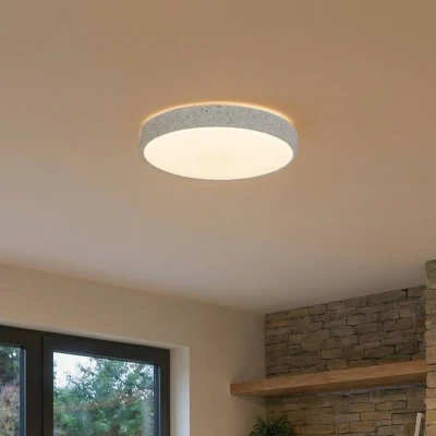 Lights.coElmor LED ceiling light in stone look, smart controllable via Tuya app The LED ceiling light is made of metal with a light grey stone look and an opal diffuser made of plastic. It not only looks very attractive, but also has a lot to offer in terms of lighting design. It can be controlled smartly using the free Tuya app (for Android and iOS) and can therefore light up in RGB colours and selectable white light. This flexibility makes the light a light source that can be used in any room. For smart control, all you need to do is download the Tuya app and connect it to the Wi-Fi. The light can then be conveniently controlled via smartphone or tablet. All light settings can also be made without the app, as a remote control is included in the scope of delivery. Functions: - RGB lighting in countless different colours - White lighting in the range from warm white (3,000 K) to daylight (6,500 K) - Infinitely variable dimmable light