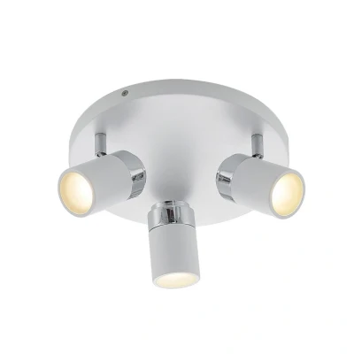 Lights.co3-bulb Kardo ceiling light with white finish - ideal for the bathroom thanks to IP44 Kardo has a modern look but also timeless qualities. Three movable lampshades are attached to a round metal ceiling canopy, which are also made of metal and are connected to the ceiling plate by joints so that they can be moved as required. Thanks to the GU10 sockets, you can use lamps of your choice, including the popular and energy-saving LED bulbs. The ceiling light is well protected and labelled IP44, making it highly recommended for use in the bathroom.