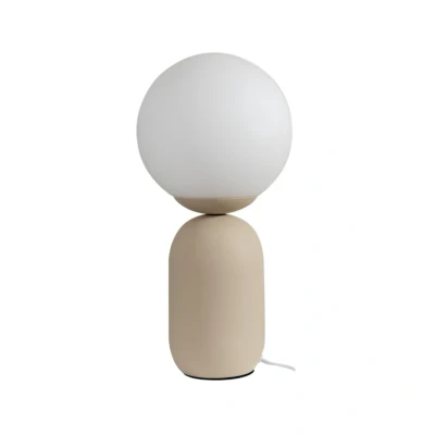 ManoManoGeneral description This elegant table lamp 'Lennes' features a modern industrial design that adds a stylish touch to your living room, dining room, or office. With its soft beige color and high-quality glass finish, it seamlessly integrates into various room concepts, enhancing the atmosphere of your home. Technical specifications Material: Glass Color: Beige Diameter: Ø 20 cm Installation Includes a switch for easy on and off operation. Usage Ideal for creating a calming or energizing atmosphere in living spaces. Enhances the mood in the room and supports daily activities with its diverse lighting effects. Other information