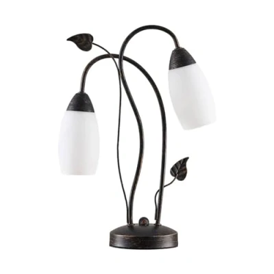 Lights.co2-bulb Stefania table lamp with a floral look Stefania has a playful look with its slightly floral design and curved shapes. The metal is black and has fine brush strokes in gold, which make the surface appear more brownish and also give it more elegance. Overall, the table lamp is a very decorative addition to the living area, providing atmospheric lighting in the evening.