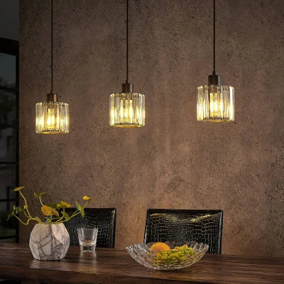 General description This stylish Lindby Vella pendant light features a modern industrial design, perfect for enhancing the atmosphere of your living room, dining room, or office. With its three transparent glass lampshades, it provides bright illumination while creating a warm and inviting ambiance. The dynamic appearance is achieved through varying cable lengths, making it a charming addition to any contemporary space. Technical specifications Type: Pendant light Material: Metal and glass Dimensions: 83 cm Number of bulbs: 3 Light dimmable: Yes (dimmer switch not included) Usage This pendant light is ideal for creating a cozy atmosphere in various settings, including living rooms, dining areas, and offices. It is particularly suitable for spaces where bright illumination is desired, as the glass lampshades allow light to escape in all directions while minimizing glare. Other information