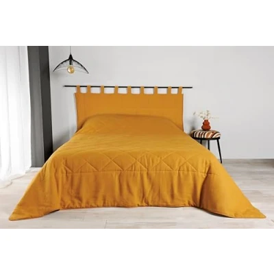 LINDER Libeccio Collection Plain Fleece Throw Woven Fabric and Dyed in France Rectangular Ochre Yellow Dimensions 230 x 250 cm 100% Linen Polyester Wadding