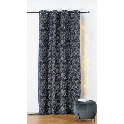 Features: This curtain measures 140 cm wide and 260 cm high when hung. It has a 40mm diameter eyelet finish in gun barrel colour and therefore fits a classic round rod. Its material is composed of recycled yarns, 60% polyester 36% cotton 2% other fibres 2% polyamide. Its pattern is representative of the astral world. Its weight is 1kg07. DESCRIPTION: This jacquard fabric represents the typical patterns of the astral world. Milky Ways, moons and suns stand out against the midnight blue background that highlights the golden outline. This gold thread makes the drawing both discreet and elegant. INSTALLATION AND MAINTENANCE: Its 40mm diameter eyelet finish is easy to install and fits curtain rods on the market. This product is easy to clean, machine washable at 30°C and can be ironed at medium temperature. LINDER : Our profession of manufacturer and manufacturer of decorative texties has gone through the ages since 1904 to make Linder one of the last textile manufacturers to design and manufacture in France. We offer varied collections, from sheer curtains to curtains, through glazing throws, cushions, etc…