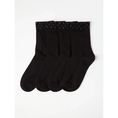 Lindex DOTS CUFF 4 PACK Socks, Women's, Size: 3.5 5, Black
