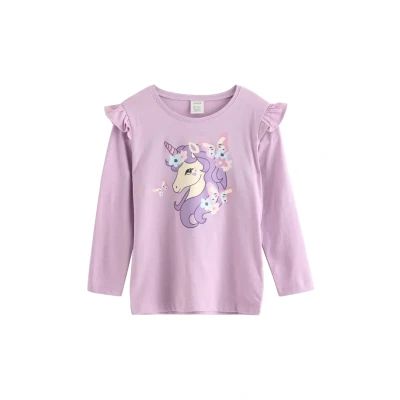 Lindex Frill Detail Unicorn Print Long sleeved top for kids, Size: 6 7y, Light lilac