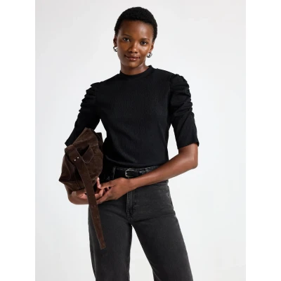 LindexTextured top with short sleeves, gathering at the shoulders, a straight fit and a high neckline.