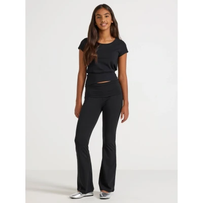 LindexYoga trousers in soft and stretchy cotton jersey with flared legs and elastic, foldable waist.