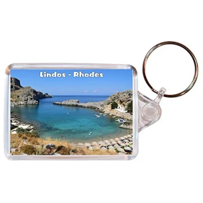 Lindos Rhodes Greece Double Sided Large Keyring Gift/Present/Souvenir BBSK1900