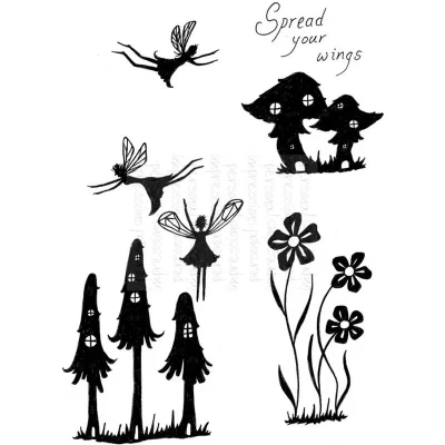Fairy Mushrooms. Permanently clear stamps produced in a thicker photopolymer sheet (3.2mm). Easy to align for precision stamping. Sticky back for direct mounting onto acrylic blocks. Can be used stored and reapplied many times. size A6. Designed by Lindsay Mason RI1529 PICSA6435 PICSA6435 MPN RI1529