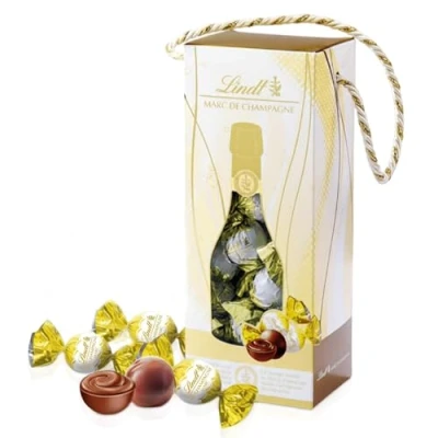 LUXURIOUS CELEBRATION CHOCOLATE GIFT – Elegant champagne-bottle themed gift box filled with premium Lindt Marc de Champagne truffles 350g Perfect for birthdays, celebrations, Christmas & New Year gifts, anniversaries, and classy gifting moments. PREMIUM SWISS MILK CHOCOLATE – Crafted by Lindt’s Master Chocolatiers, each truffle offers a velvety milk chocolate shell surrounding a smooth, flavourful Marc de Champagne filling for a truly indulgent taste. IDEAL FOR FESTIVE OCCASIONS – Perfect addition to hampers, party tables, christmas stocking fillers, or New Year treats. A delightful way to elevate any celebration with a touch of indulgence. ELEGANT GIFT PACKAGING – Stylish bottle-shaped window box with gold detailing and rope handle adds a premium touch, making it ready to gift without needing extra wrapping. READY-TO-GIFT DESIGN – No wrapping needed! The elegant premium box makes this chocolate gift an effortless and impressive option for friends, family, colleagues, or loved ones.