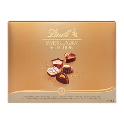 Lindt Swiss Luxury Selection 19 Assorted Milk, White and Dark Chocolate Box Medium, 195g Gift Present or Sharing for Him Her Christmas, Birthday, Celebrations, Congratulations, Thank you
