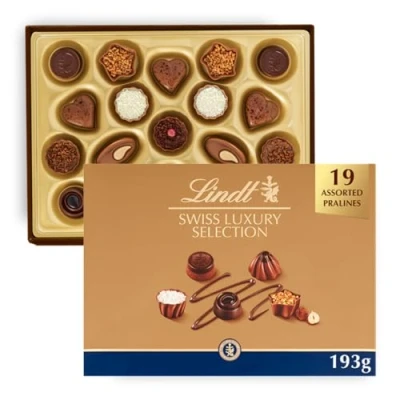 Lindt Swiss Luxury Selection 193g Medium Gift Box 19 Assorted Milk, Dark & White Chocolates Christmas, for Him Her
