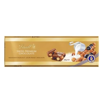 AmazonSilky swiss milk chocolate infused with crunch hazelnuts and raisins A chunky milk chocolate bar for a chunky chocolate treat Chocolate bar to share on a big night in Gold packaging for an ideal gift LINDT & SPRUNGLI (SCHWEIZ) AG CH-8802 KILCHBERG