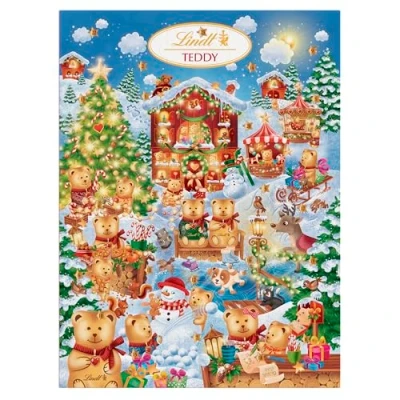 An adorable Advent Calendar with milk and white chocolate Napolitains, mini TEDDIES and truffles. This TEDDY-themed chocolate Advent Calendar is the perfect way to countdown to Christmas in style. Discover the smooth texture and mellow flavour of the finest Lindt milk and white chocolate. Crafted with unrivalled passion and expertise by the Lindt Master Chocolatiers since 1845. Lindt chocolate is sustainably produced from bean-to-bar, protecting our people and preserving our planet.