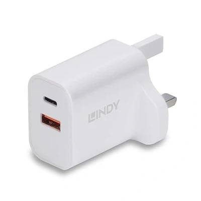 Lindy 30W USB Type A & C Charger UK Plug, Dual