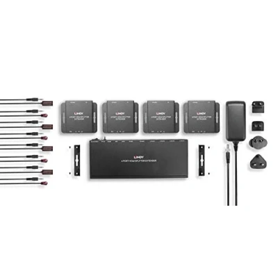 Lindy 70m Cat.6 4 Port 4K HDMI & IR Splitter Extender, 3840x2160, Power over Cable (PoC), Local Monitoring / Cascading, EDID Emulation, Uses Low Cost UUTP Cable, Digital Signage, AV Distribution