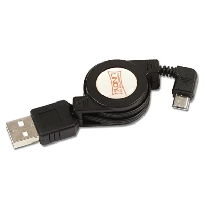 LINDY Retractable USB 2.0 Cable, Type A Male to Right Angled Micro B Male, 80cm