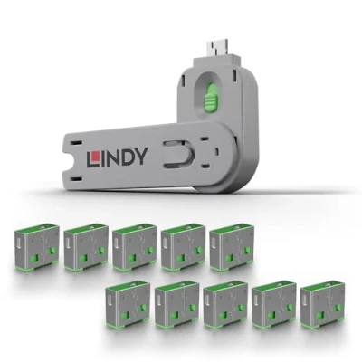 Lindy USB Type A Port Blocker Pack of 10 Blockers + Key, White