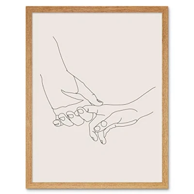 Line Drawing Hands Holding Minimalist Art Print Framed Poster Wall Decor 12x16 inch