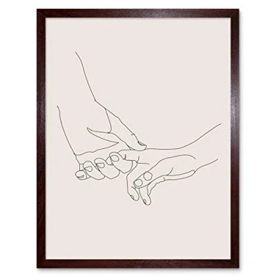 Line Drawing Hands Holding Minimalist Art Print Framed Poster Wall Decor 12x16 inch