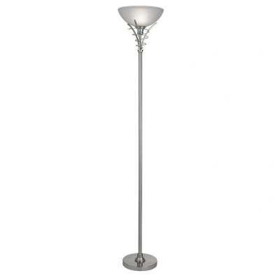 Linea 1 Light Floor Lamp Uplighter Satin Silver and Opal Glass, E27