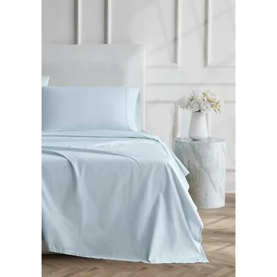 Linen Closet 400 Thread Count Ultimate Cotton Percale 4 Piece Sheet Set, King, Light Blue