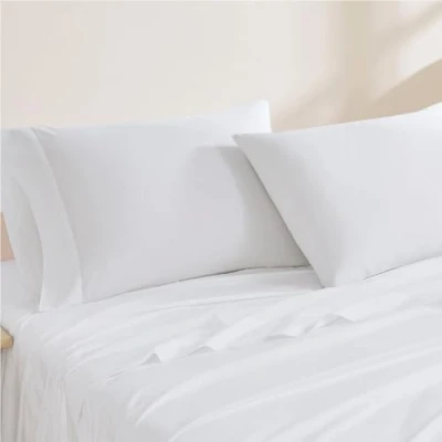 Linen Closet Luxury Cotton 144 Thread Count Organic Standard Pillowcases, Set of 2, Arctic White