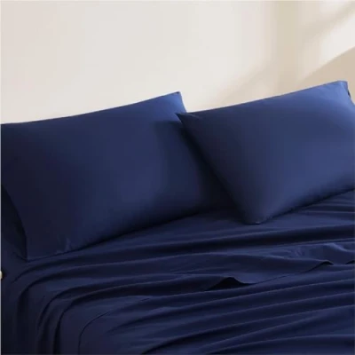 Linen Closet Luxury Cotton 144 Thread Count Organic Standard Pillowcases, Set of 2, Navy
