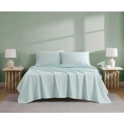 Linen Closet Luxury Cotton 300 Thread Count Organic 4 Piece Sheet Set, King, Aqua