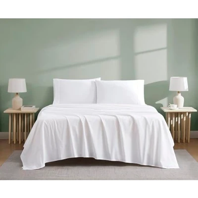 Linen Closet Luxury Cotton 300 Thread Count Organic Bedding 3 Piece Sheet Set, Twin, Arctic White