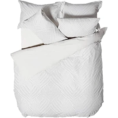 Featuring a 70's style Ogee tufted cotton design. Made of 100% cotton making for an impossibly comfortable sleep. Clear button closure for easy removal of duvet. Includes two matching pillowcases measuring 50 x 75cm (20" x 30"). Pillowcase inserts should measure 50 x 75cm (20 x 30") or less. Machine Washable at 40 Degrees, Line Dry and Warm Iron Only.
