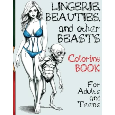 Lingerie, Beauties, and Other Beasts A Coloring Book for Adults Teens: Fifty intricate illustrations with gorgeous women dressed in sensual lingerie strange, mysterious creatures