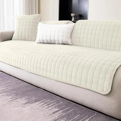 LINGKY Soft Flannel Sofa Covers Washable Cushion Covers, Non Slip Cover 1 2 3 Seater Couch for Sectional Sofa, Slipcovers L Shape Furniture Protector (Beige White, 70x150cm)