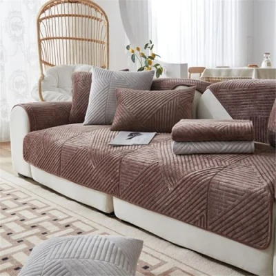 LINGKY Soft Velvet Sofa Covers Washable Cushion Covers, Non Slip Cover 1 2 3 Seater Couch for Sectional Sofa, Slipcovers L Shape Furniture Protector (Chocolate,90x160cm)