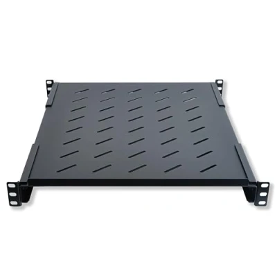 Steel shelf to support network components of rack cabinets. Load capacity 120 kg with the retracted supports. RAL9005 Black Electrostatic Powder Coating Screws are also included for installation. The brackets on the uprights are extensible, so they can be adapted to all rack cabinets with 4 struts, whose distance between them is 65 to 71.5 cm (or 83 cm with 2 support screws instead of 3).