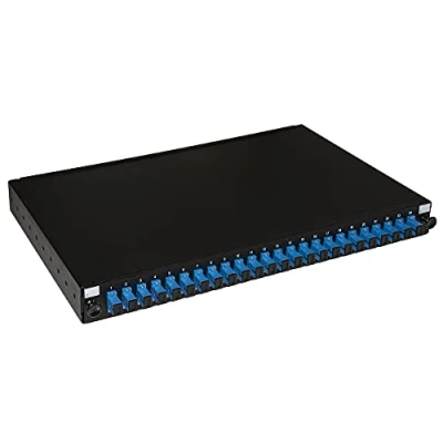 Fiber optic junction box, occupies 1 unit in the rack cabinet. Steel Optic Fiber Removable Panel With 24 ports and 24 SC Simplex Singlemode 9/125 Fiber Optic Adapters Install The interior is already equipped for the installation of the Pigtails Colour: black.