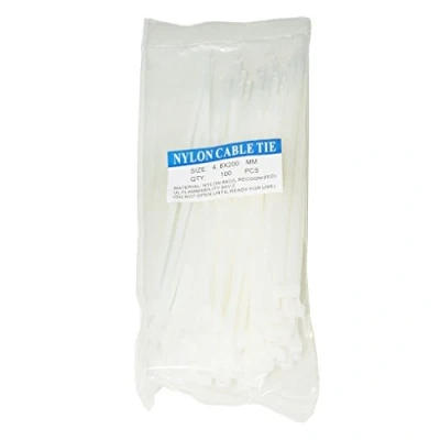Pack of 100 nylon cable ties very strong and flexible self-locking Tie cables together or attach to pipes or other objects close to them You can cut the excess part after tightening Measures 4.8 x 200mm Flame guard: UL 94V-2