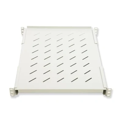 Steel shelf, to support the network components of rack cabinets. Attaches to the front and rear posts of a 19" rack cabinet. Typically then these shelves can be installed on cabinets about 1000 mm deep. Load capacity 120 kg with retracted supports. Color grey RAL7035