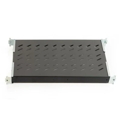 Fixed steel shelves to support network components of rack cabinets. Load capacity 50 kg. RAL9005 Black Electrostatic Powder Coating Screws are also included for installation. The brackets on the uprights are extendable, so they can be adapted to all rack cabinets with 4 struts, the distance between them is 37 to 45 cm.