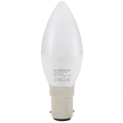 ManoManoGeneral description This Wi-Fi LED Opal Candle Dimmable bulb from Link2Home offers adjustable white light from warm to cool tones, along with the ability to choose from over 16 million colors. With a dimmable feature, it can be controlled via an app or voice commands, making it perfect for creating the ideal atmosphere in your home. Technical specifications Fitting: SBC (B15) Input Wattage: 5.5W (equivalent to 50W) Light output: 470 lumens Color temperature: 2,700K to 6,500K (warm to cool white) RGB colors: Yes Dimmable: Yes Beam angle: 180° Average rated life: 20,000 hours Compatibility and accessories Compatible with Amazon Alexa and Google Assistant for voice control Requires Wi-Fi connection Compatible with iOS 8 or later and Android 4.1 or later devices Requires the free Link2Home Pro app for full control and customization Installation Install the bulb into a compatible light socket (SBC B15 fitting) Connect the bulb to your Wi-Fi network using the Link2Home Pro app Usage Control