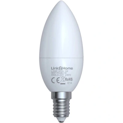 Link2Home E14/40W Equivalent WiFi LED Lamp, Smart Light Bulb with RGB Multicolour Settings Dimmable Alexa and Google Voice Control